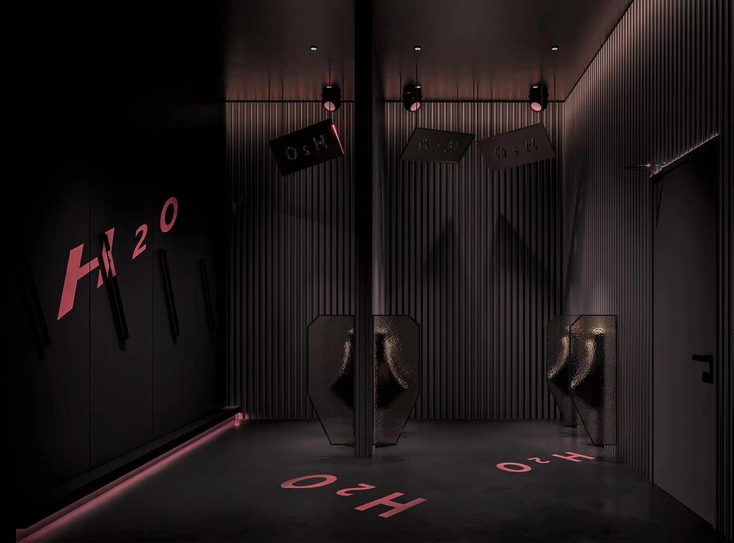 細節之處方顯真章,好的酒吧設計公司和KTV設計公司往往不會忽略掉細微不受重視之處,因為只有完整不割裂的設計才能稱得上好設計,就譬如本案衛生間以及衛生間休息室的設計,采用了極簡的墻面設計搭配上畫龍點睛般的燈光效應,化腐朽為神奇,將兩者與酒吧的整體設計調性充分融合,讓消費者從酒吧主體區域走出后有從一處夢幻走向另一處夢幻的連貫感覺。