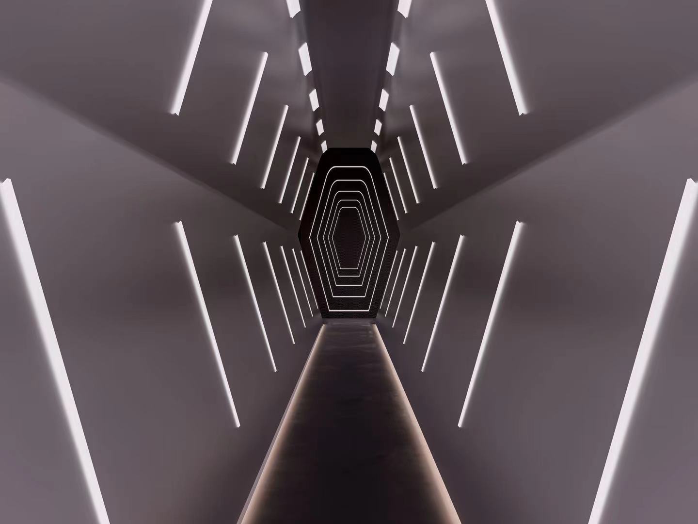 設計師以簡單規整的幾何圖形設計排列,輔以整齊有序的燈光、簡約的金屬質感建材,化繁為簡,極大提高了走道的縱深效果,讓消費者行走其中就好像是置身于穿梭隧道之中,有種步步穿越移形的奇異之感。