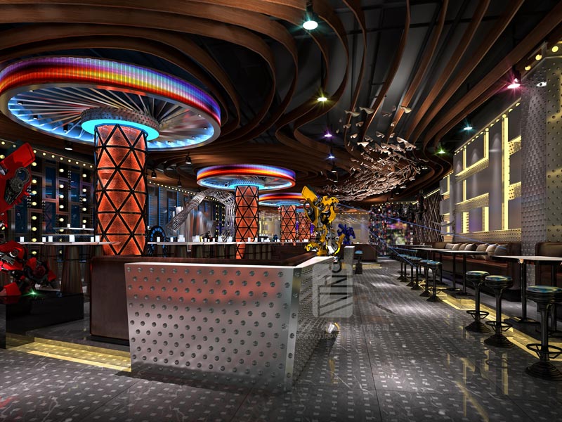 本案根據放縱relax bar的定位,以90后的思維感官,主打重金屬的時尚感,各種新潮元素將整個空間打造出電影大片的質感,帶來科技感的震撼,更增添幾抹神秘的未來感,為您實現一個海洋世界的機車夢。
