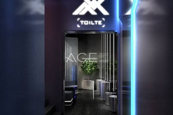 整個酒吧格局方正,從內到位的區域劃分由中心舞臺以正方形的形狀向外擴充,整齊規范,燈光也由中心明亮多彩漸漸轉弱,給人從激情到放松的絕佳體驗。酒吧的內部空間是設計師打造的重點區域。前廳區域,一盞盞穿透力極強的小射燈準確無誤地投影在對應的位置上,讓每一位客人都有屬于自己的主角光環。頂部采用大片流動性的藍色燈區,四周的藍色線條燈帶與之呼應,瞬息萬變的燈光可以從一個安靜的少女變成魅力四射的狂野女郎,四面八方投射出五光十色的光影,氣氛燃爆全場。每張桌子用明亮的線條勾勒出本身的形狀,貼心的設計是為了讓每一位客人都能輕松找到自己的專屬座位。