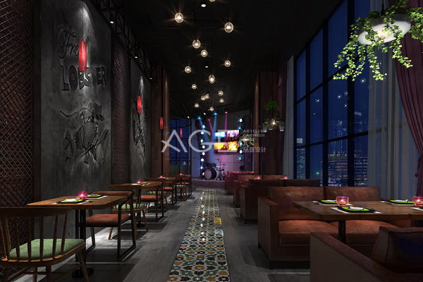F2餐飲酒吧設計色彩搭配著實讓人眼前一亮,餐廳內部設計十分現代,寬敞空間以現代材料與明亮色彩打造出典型的工業風室內裝飾風格。墻面裝飾性的圖案頗具藝術感,與各式家具一同組合成一幅既現代又不乏生氣與創意的生活圖景。