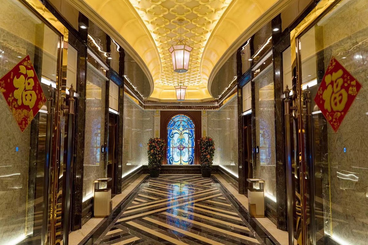 設計理念:從大廳吧臺的背景的黑桃圖案、立柱上的線條、燈飾的異性造型、玻璃欄桿的羅馬柱等,再到地面大理石花紋,每一個角落都蘊含著“歐式”元素的存在,突出主題印象,大廳中最大亮點天花板的裝飾:片片金色蝴蝶垂下,擁簇在蝴蝶中間的則是花朵造型的燈飾,蝴蝶的姿態一種帶入3D的視覺效果,以吧臺為中心,一側休息區域,另一側是造型別致的噴泉水池,流線彎曲的金色凹槽,緩緩悠然的水流給人一種放松愉快的感覺。