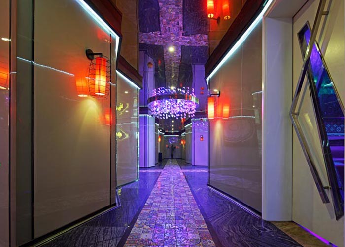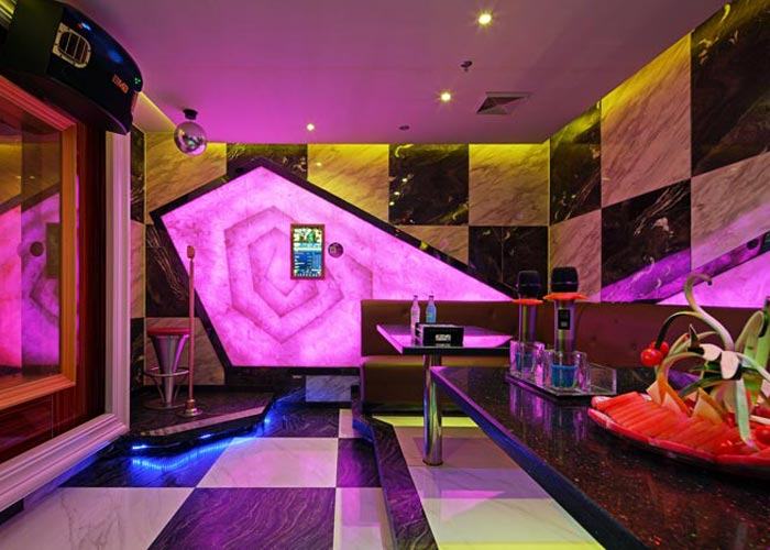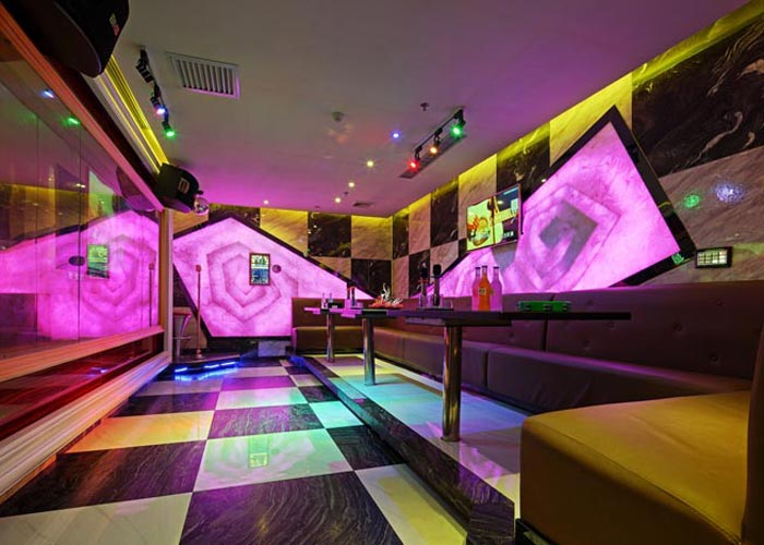 暖色燈光構建法式浪漫街頭情境,混搭仿紅磚墻面,歐式電話亭、烈焰紅真皮沙發;粉色玫瑰包房含苞待放,珠光粉古典沙發,彰顯少女情懷;繽紛糖果色系墻紙,RIO彩色雞尾酒與繽紛糖果一脈相承,似醉微熏,欲拒還迎,五彩繽紛的糖果世界,或濃郁,或清新,或淡雅,或酸甜,或甘醇,正如這百味人生。