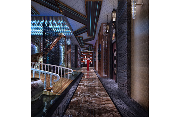 項目說明:藍色的星空,星光如同花朵般綻放著光芒。綠色的森林,仿佛被仙境中的綠色霧氣繚繞。一扇門,連接兩個世界。世界的邊緣,是靜謐的黑暗??臻g給人這樣的感受本身空間本身所創造的美感深深植入,了客人的心中。這種感受讓人無法回避,也不想回避。藍色的光芒,映襯著玻璃地板。深色的墻壁,led打造出了夢幻的世界。天花得造型采取了多種形式,光線暗淡的區域給人深邃得感受。品彥設計師注重對造型的運用,希望借助創意來讓不同的空間因為造型的改變而變得不一樣,從而達到預期得效果。這樣看上去更加時尚和現代,如玻璃上的樹枝給人一種濃郁得自然書香氣息。從天花上垂下來得飾物、流線形的墻體以及墻壁上的色彩斑斕的圖形都為空間增添不同的風情。