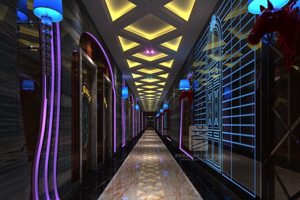 用雅靜的色調作背景,襯托高品位的藝術品陳設,以此來烘托高品位的文化氛圍,并配以突出重點裝飾的燈光照明設計,以增強空間的立體感與節奏感,這成為貫穿KTV各個區域設計的基本手法。青海德令哈奧維斯量販式KTV整體裝飾在相當程度上達到了高文化品位與超前空間感受并重的裝飾效果