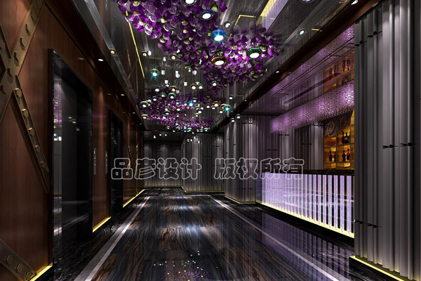 走廊設計根據每層的空間設計,打造出不同的設計風格,各有風采又相得益彰。二層、四層的走廊的設計更為自由活潑,雙側墻壁采用白色為主色調,中間采用鏤空鑲嵌玻璃的方式,讓墻面裝飾形式更為靈動,沒有過多的繁瑣設計,卻簡潔大方有內涵。地磚也很用心的選用碎花花紋圖案的板磚與水紋深色板磚相結合的設計,走在這仿佛走上一條充滿花香的幽遠小徑,滿滿的生機和活力。吊頂設計更是符合KTV所在地的地名,選用了飛鳥的造型進行裝飾,配合燈光的變化,讓人感受到輕松自在的氛圍。