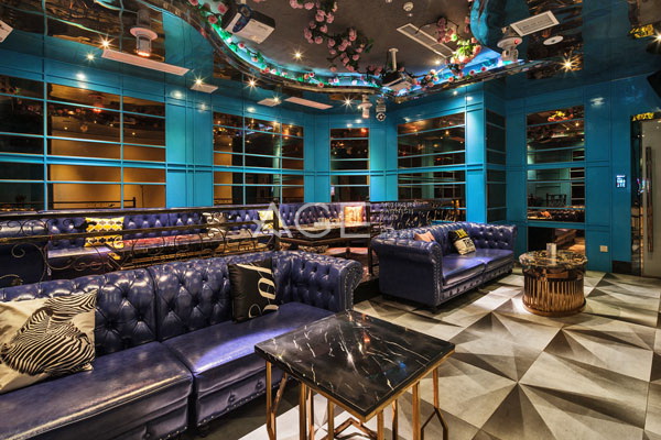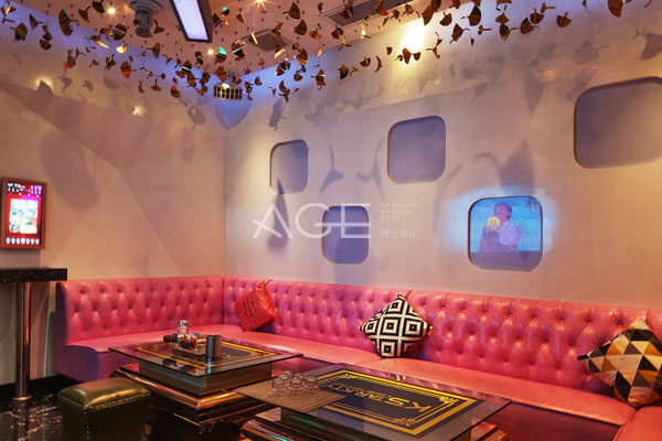 對于不同功能空間和包房的設計,設計師楊彥有著自己獨到的見解,真正做到了“一脈相承”而又“各具特色”。粉色系的包房溫馨可愛,吊頂懸掛反光珠片,在燈光映襯下投射到墻壁上各種圖案,打造夢幻的氛圍。天藍色包房呈現出小清新的氛圍,吊頂分層設置,墻壁以石膏線勾勒出造型,角落處的鮮花成為點睛之筆,整個空間沒有太多的復雜造型,沒有太多的色彩堆砌,更顯一份純粹浪漫。