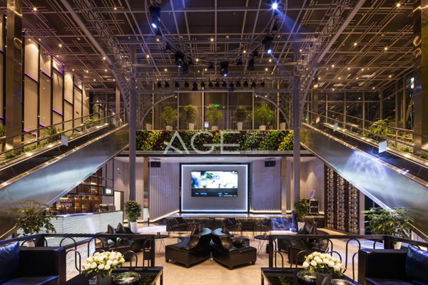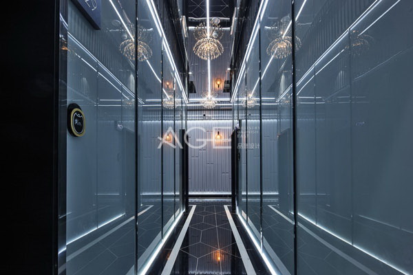 大廳的等候區仿佛高級酒吧一般,又別具匠心地在大廳頂部鋪設了環繞的綠植,讓綠意盎然的感覺穿插到現代的科技感當中,清新的空氣和時尚的風格互相融匯,似真似幻,有如置身夢境一般。前廳和前臺空間的設計,凸顯出設計師的不凡功力,將暗調風格演繹的淋漓盡致,彰顯國際風范。整體設計采用黑、灰、白的高級色調,并大面積采用了鏡面材料,組合搭配出設計的輕奢質感。前臺采用矩形石材臺面,通過燈光設計勾勒出通透的效果,上空懸掛紅色燈具,成為空間內*閃耀的顏色,醒目亮眼。前臺對面的位置設置了酒品置物架,同時起到分割空間的作用,暗埋的LED燈帶營造出時尚質感??臻g內的承重立柱以白色圓弧裝飾,形成凹凸的里面造型,地面采用明暗漸變的板材組砌,映襯在鏡面材質的吊頂上,形成明暗結合的倒影,增加了空間的層次感,仿若進入百花筒中每個角度都有不一樣的精彩。