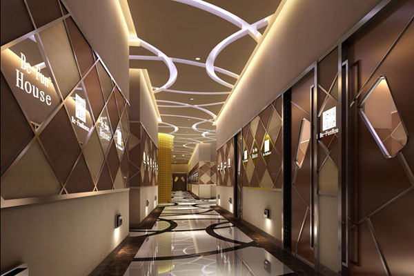 項目說明:本案把中國“文化”與“修養”巧妙的融入到夜場這片可造領域里去,突破簡單的時尚,表達簡約的設計內涵。 這是一個追求時尚同時又注重環保的玩家空間,綠色沙發靠背從視覺上傳達健康感念;蜂巢狀天花吊頂,盡顯靈動唯美之感。