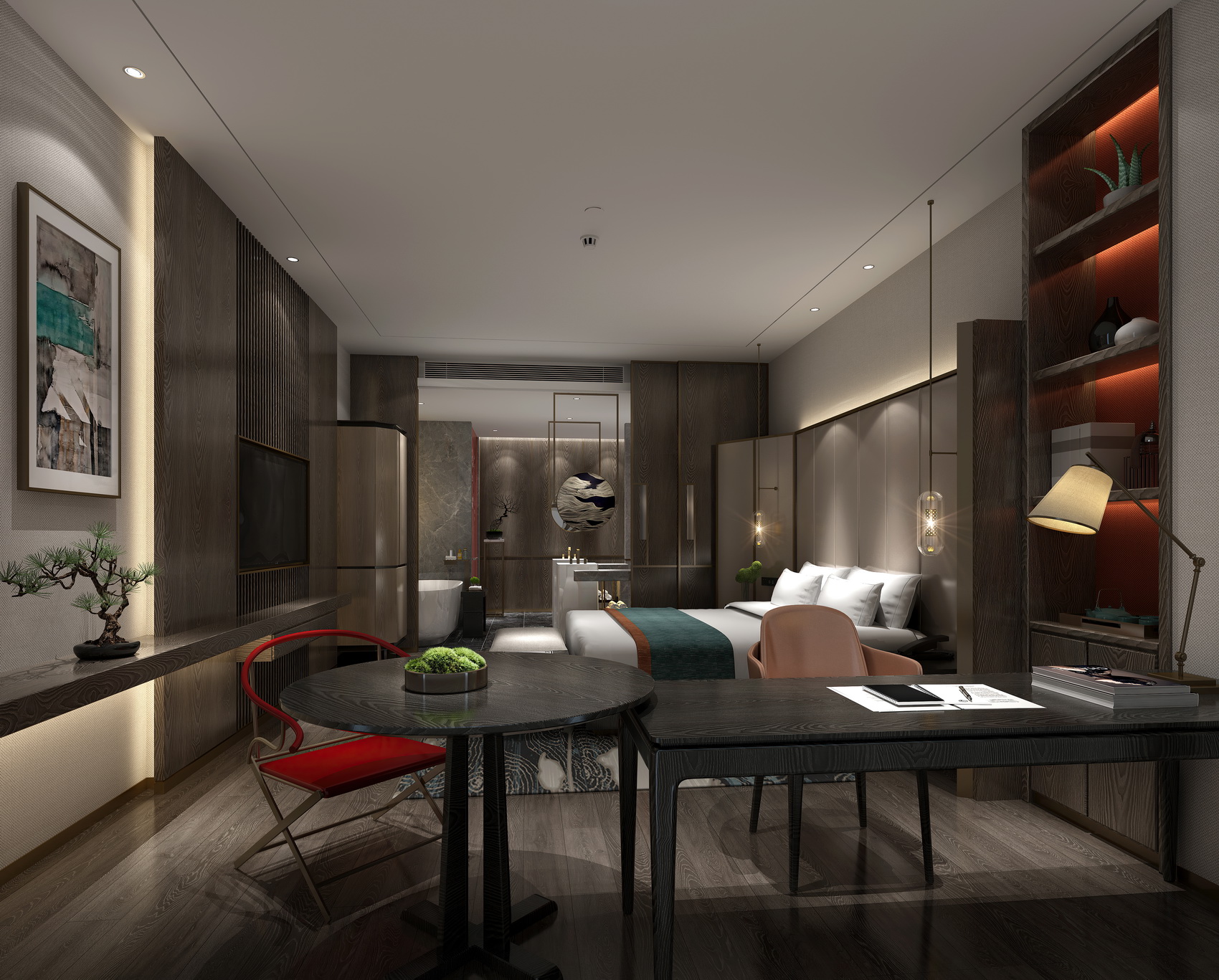 臥室設計,設計師在布置完善各項功能的同時,也用推拉門的設計讓整個臥室的空間顯得更加寬闊通透。同時,設計師依舊采用大量木質建材和家具,及中式古韻元素豐富臥室的設計底蘊,像床頭的木質屏風設計、床下的祥云地毯,以及洗浴間的流水畫紋等等,無一不從細節處體現了臥室設計的深厚古韻。