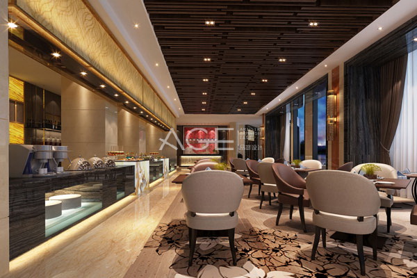 電梯間、首層公共衛生間、全日制餐廳、茗雅大堂吧等公共區域,設計師在突出功能性的同時,將細節之美貫徹到極致。各區域設計風格一脈相承,在設計師巧妙的搭配下又形成了獨特的風景。設置的大堂吧輕松自然,坐在這里一邊享受美食,一邊欣賞著樟樹最美的贛江風景,無論是朋友小聚,還是暢談人生,都是別樣的愜意。