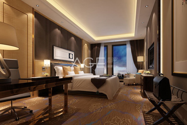 楊彥設計師秉承“以人為本”的設計理念,酒店客房豪華而不奢靡,高端但接地氣,置身其中,內可靜心享受匠心打造的新亞洲風情,外可盡情飽覽自然和諧的一線江景和獨特風光??头吭O計師精心搭配了暖色調的裝飾,房間布局科學、功能齊全,白色吊頂內嵌照明燈具,軟包墻壁懸掛精致工藝品,印花地毯與家具相互襯托,新亞洲風情盡顯豪華尊榮。設計師的巧妙設計營造出溫馨的氛圍,睡得安心,看得醉心,真正詮釋了“奢侈之旅,百姓之樂”的設計本源。
