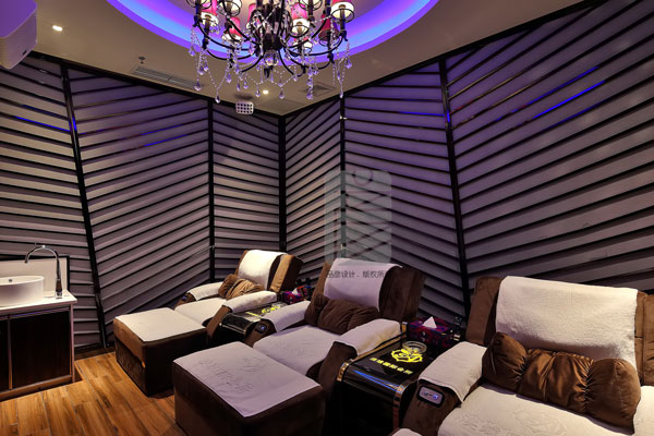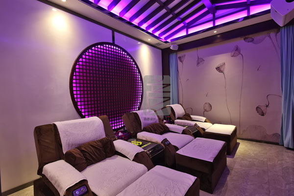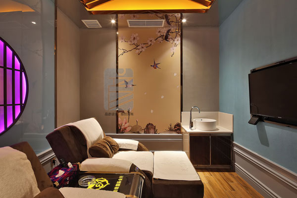 在江門奧園水療會所的設計中,引入了現代理念;通過色調的搭配和不同材質的運用,讓功能第一的裝飾原則和裝飾性完美交融。設計中多沿用傳統的深色調,以深褐、金色為主的色調加上簡約流暢的線條,使會所整體散發出一種高雅穩重的氣質。