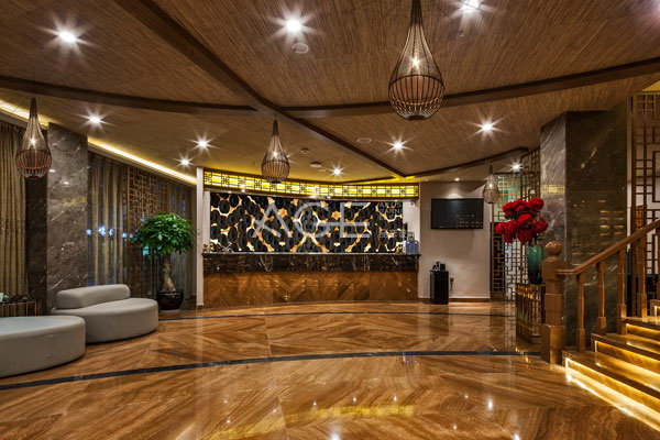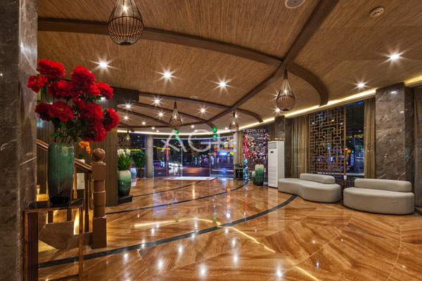 大堂采用暖色調設計,使人感到溫馨放松,大堂燈光設計明暗有度,在細節處更體現出設計師的非凡設計實力。